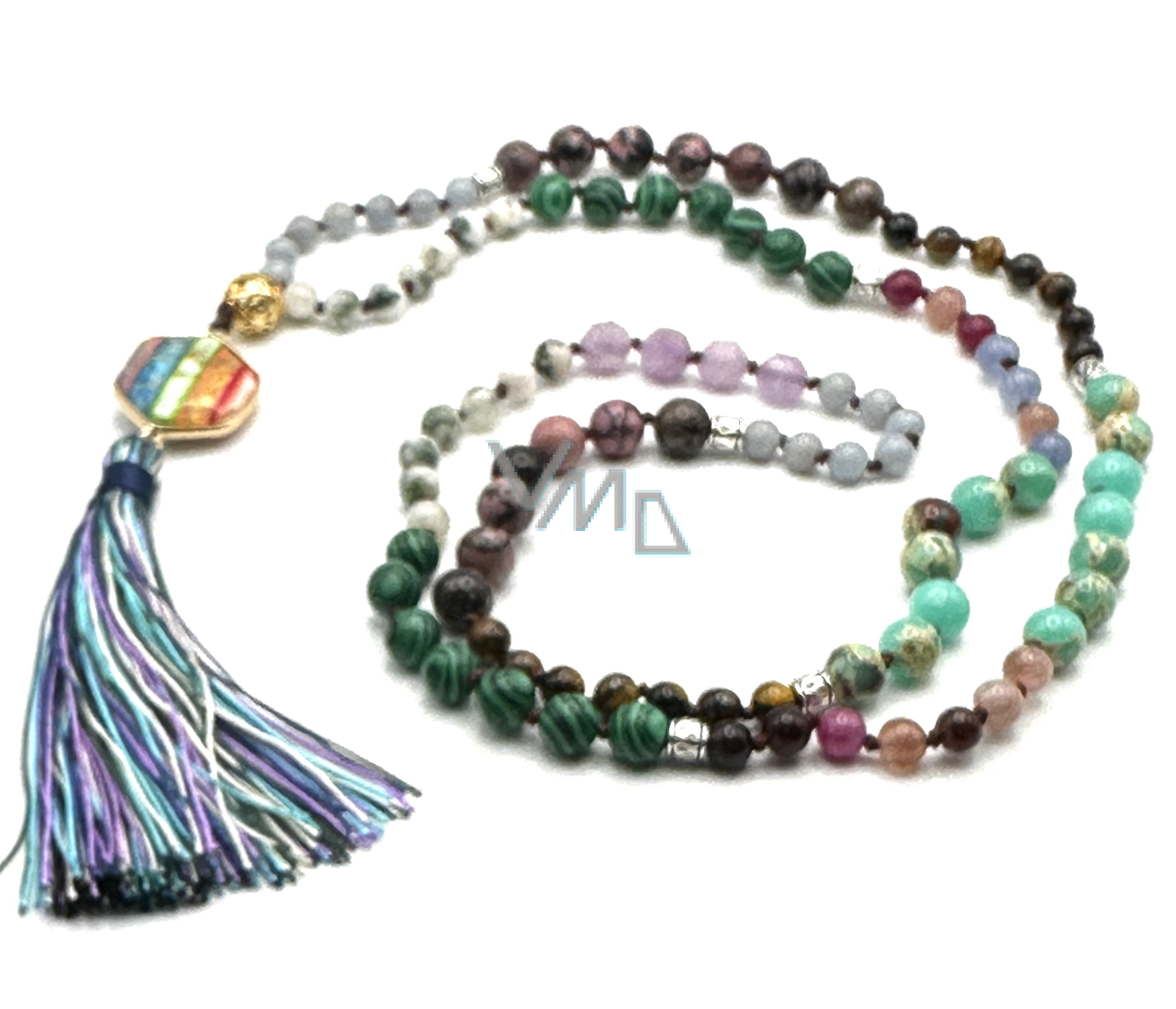 108 Mala 7 čakrový náhrdelník, Achát zelený meditační šperk, přírodní kámen vázaný, elastický, střapec 8 cm, korálek 6 mm95.04 PLN
