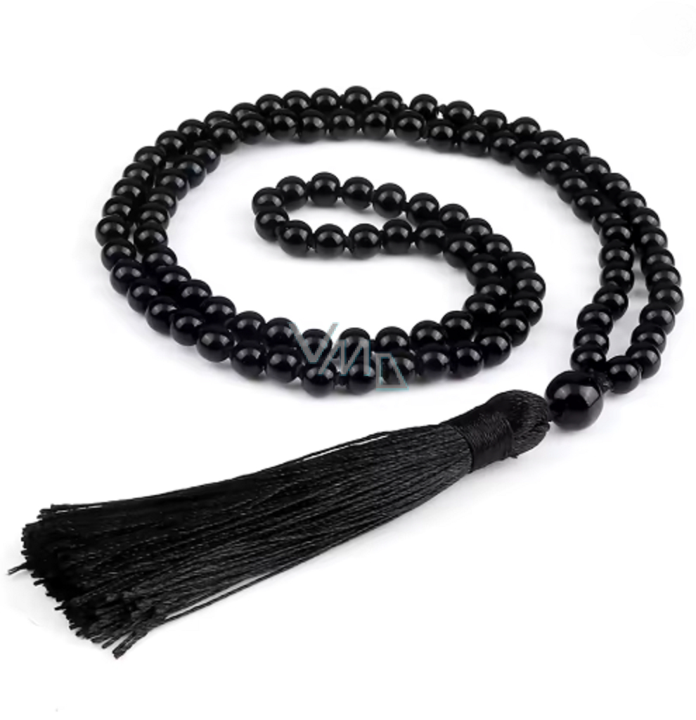 108 Mała Onyxowa Medytacyjna Koralikowa Bransoletka, Naturalny Kamień, Wianek, Koralik 8 mm