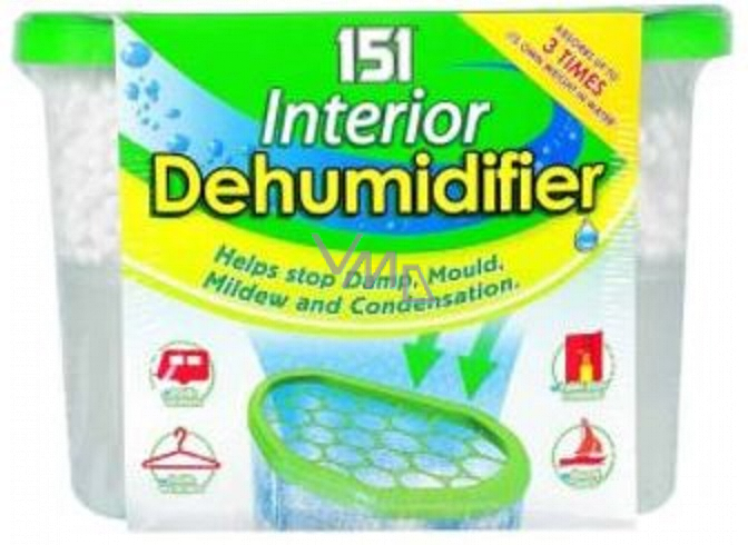151 Odstraňovač vlhkosti do interiérů s osvěžovačem vzduchu. Rychle a snadno pomáhá odstranit vlhkost, zlepšuje kvalitu vzduchu a dodá Vašemu domovu svěží vůni. Unikátní krystaly absorbují vlhkost z okolí a uzavřou ji uvnitř odvlhčovače. Zvlášť užitečný k vysoušení vlhkých pokojů, k omezení srážení par a prevenci tvorby plísní.