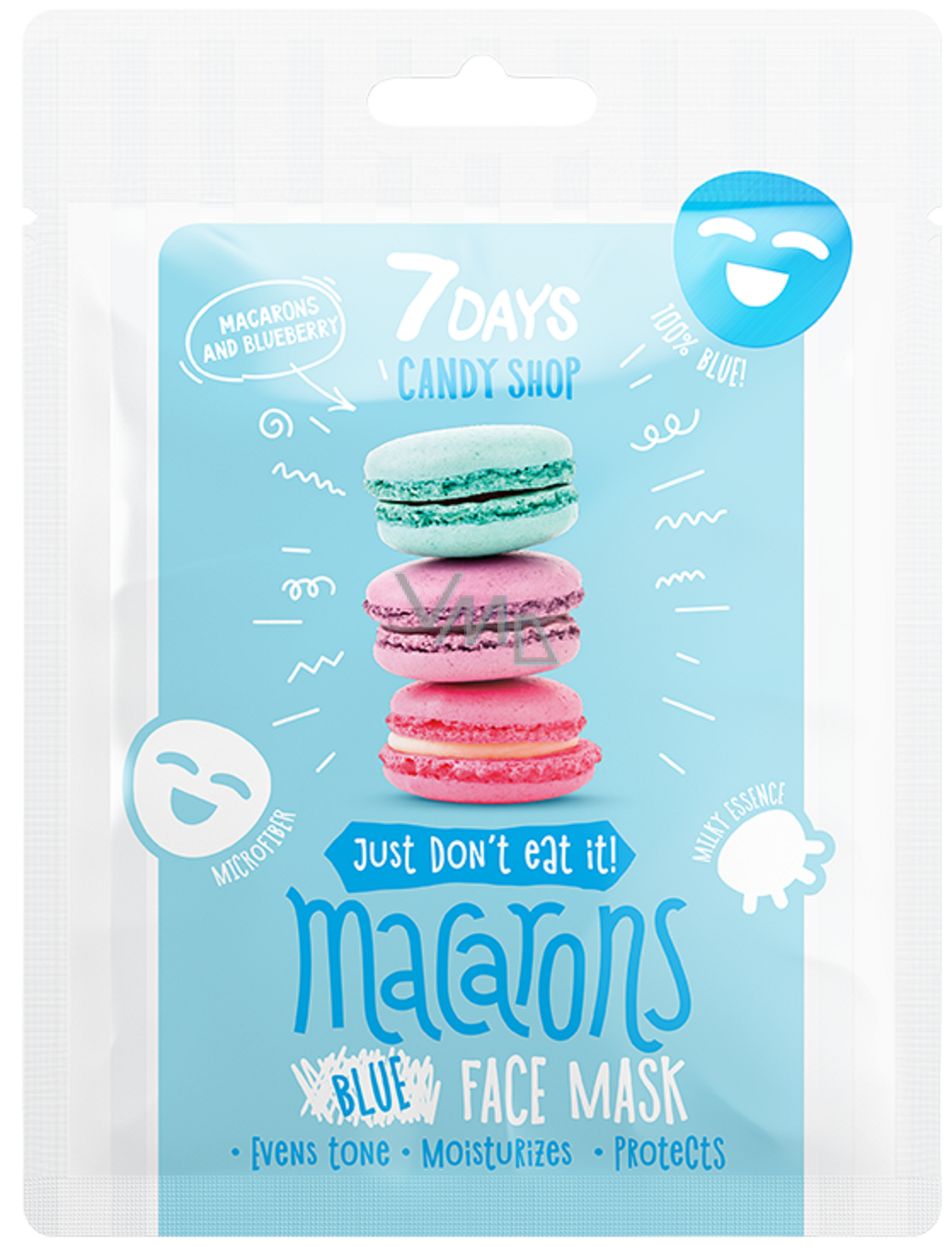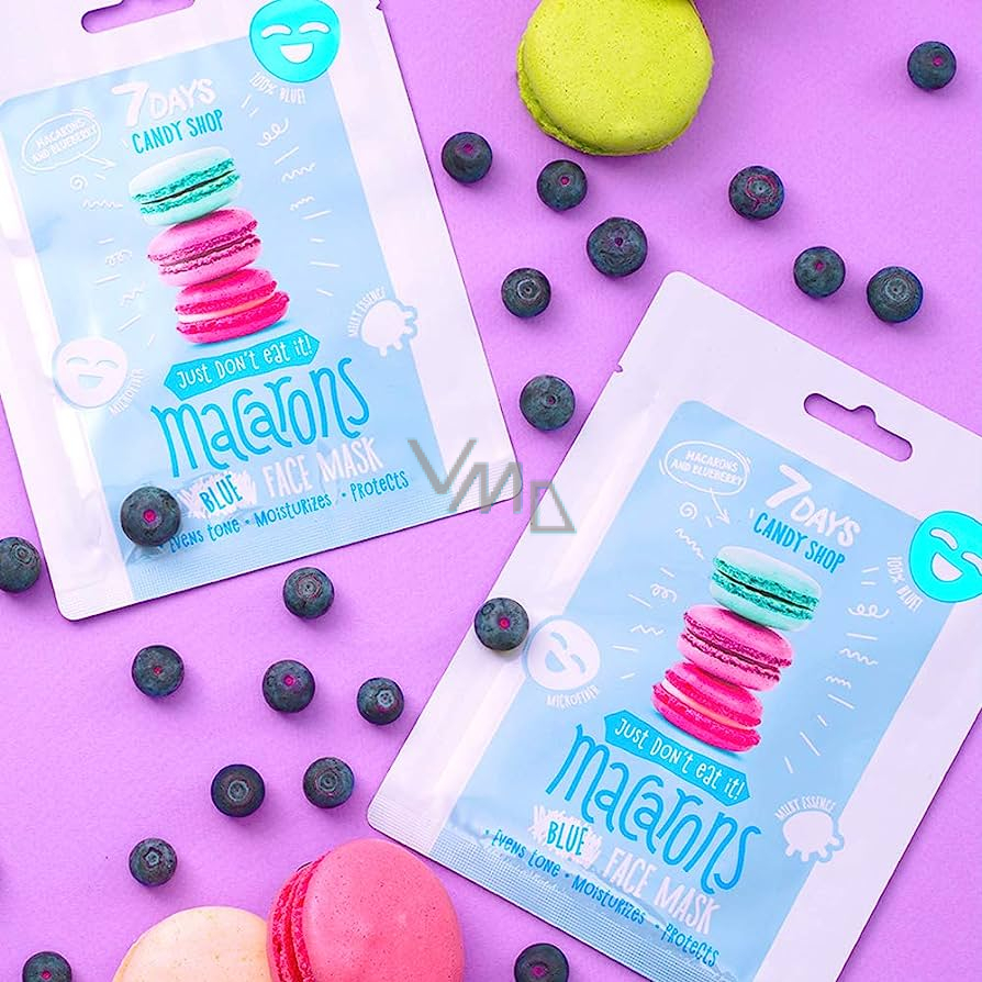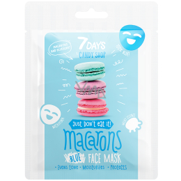 S modrou textilní pleťovou maskou Macarons Candy Shop značky 7Days bude vaše pleť sladká a jemná! Látková maska s hydratačním a ochranným účinkem obsahuje olej ze sladkých mandlí, extrakt z borůvek, vitamín C ve formě Ascorbic Acid. Vybrané látky pokožku hloubkově hydratují, zlepšují její elasticitu a zároveň ji rozjasňují a poskytují antioxidační účinek. Složení je obohaceno o pantenol a šťávu z Aloe vera, kterou vaši pleť důkladně zvlhčí a pomohou zabránit ztrátě vlhkosti. Modrá textilní pleťová maska Macarons Candy Shop od 7Days je účinný a veselý kosmetický výrobek.