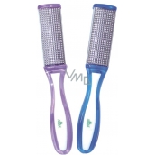 Oczyść stopy i dokładnie osusz. Użyj grubszej strony (oznaczonej jednym wystającym punktem) do usunięcia zrogowaciałego naskórka. Cieńszą stronę (oznaczoną dwoma wystającymi punktami) użyj do wygładzenia. Stopy przepłucz i osusz. Po użyciu umyj skrobaczkę ciepłą wodą i pozostaw do wyschnięcia.