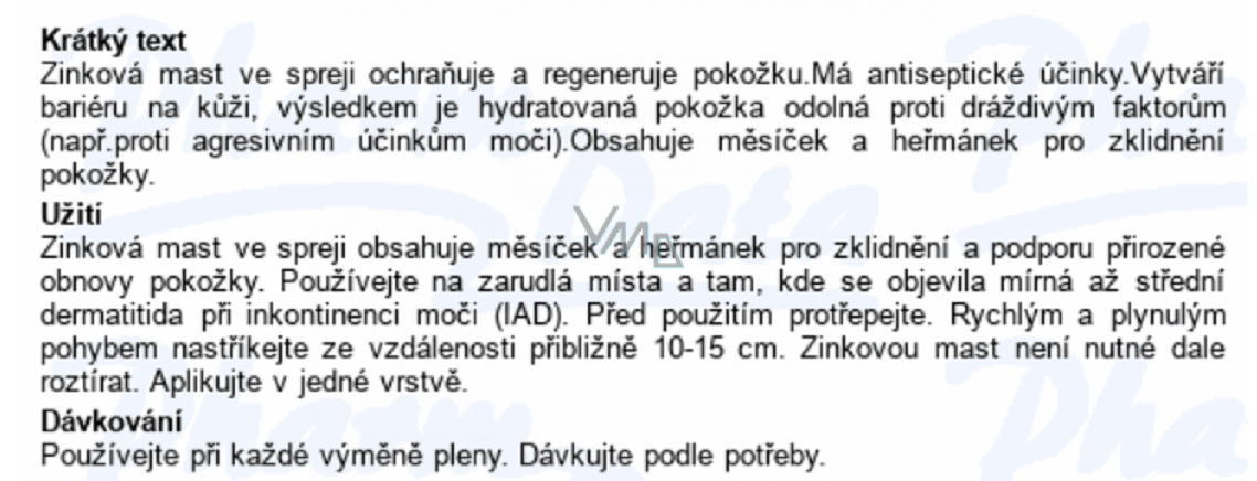 - Nastříkejte ze vzdálenosti přibližně 5-10 cm. Zinkovou mast není nutné na pokožce roztírat.