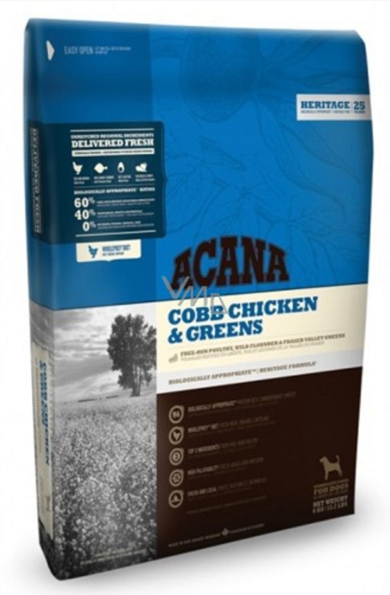 Acana Adult Cobb Chicken & Greens Heritage kompletní krmivo vhodné pro všechna plemena dospělých psů 17 kg