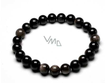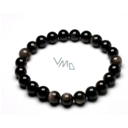 Achát černý náramek elastický přírodní kámen, kulička 8 mm / 16 - 17 cm, dodává odvahu a sílu