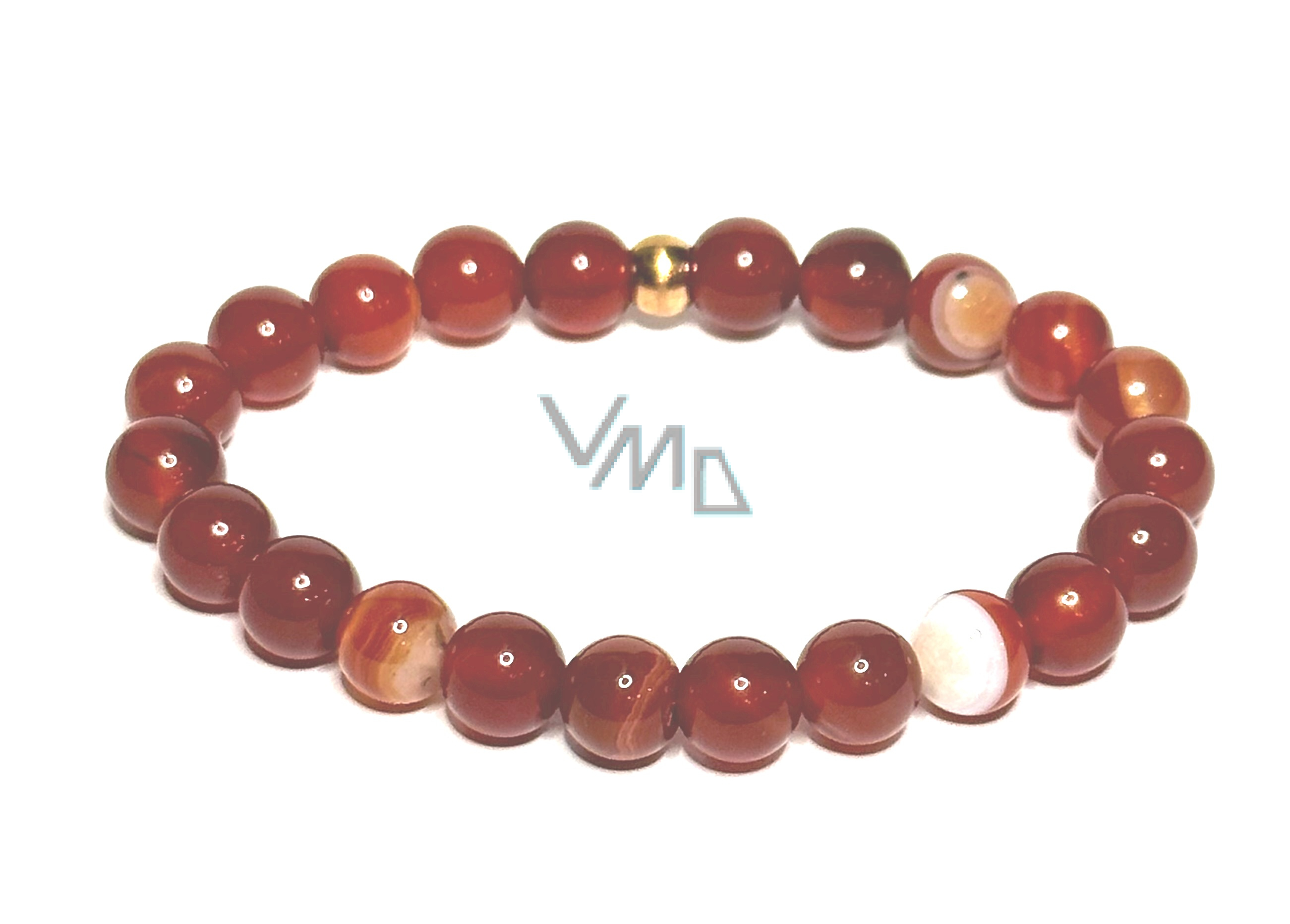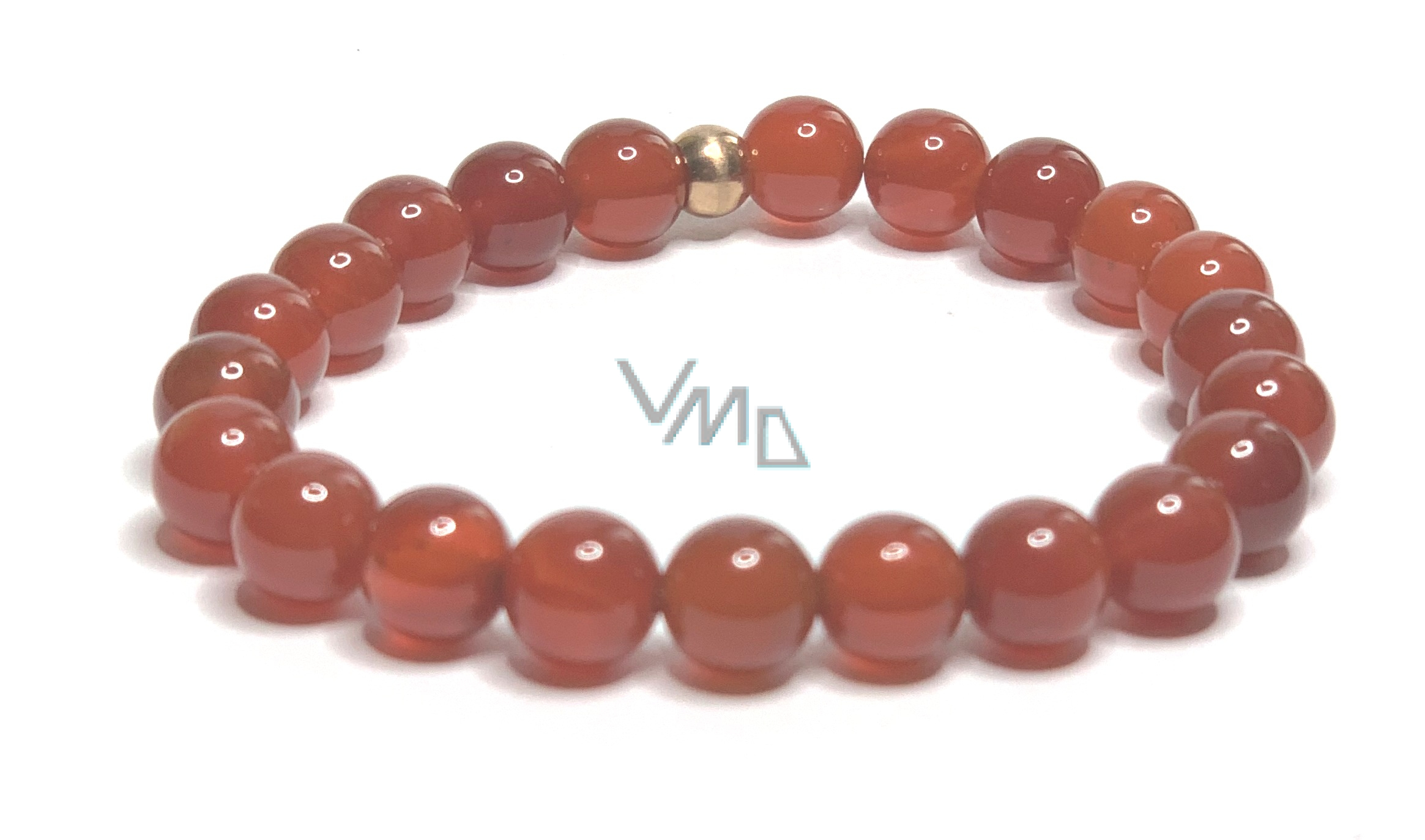 Agat czerwony bransoletka elastyczna naturalny kamień, kuleczka 8 mm / 16 - 17 cm, dostarczana od razu z waku i siłą