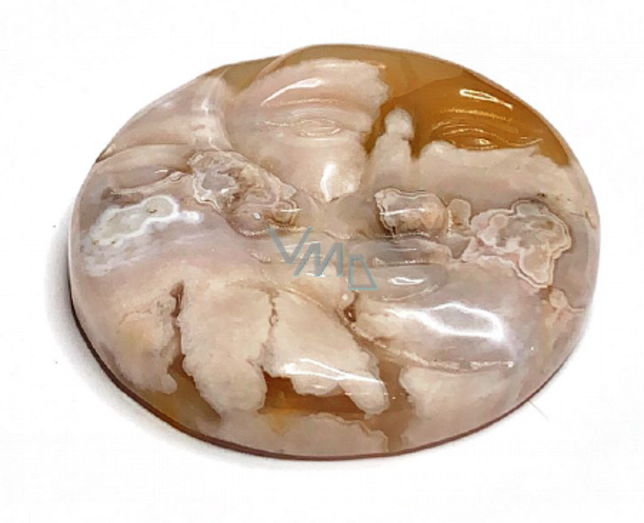 Achát květinový tvář slunce a měsíc ručně vyřezávaný přírodní kámen 5 cm, klid - ochrana - síla - harmonie