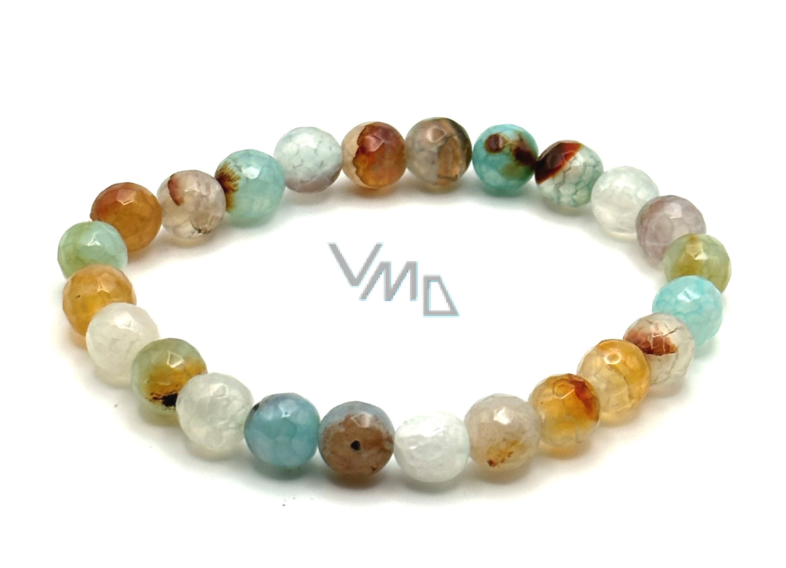 Achat jasnoniebieski bransoletka fasetowana elastyczna naturalny kamień, kuleczka 8 mm / 16 - 17 cm