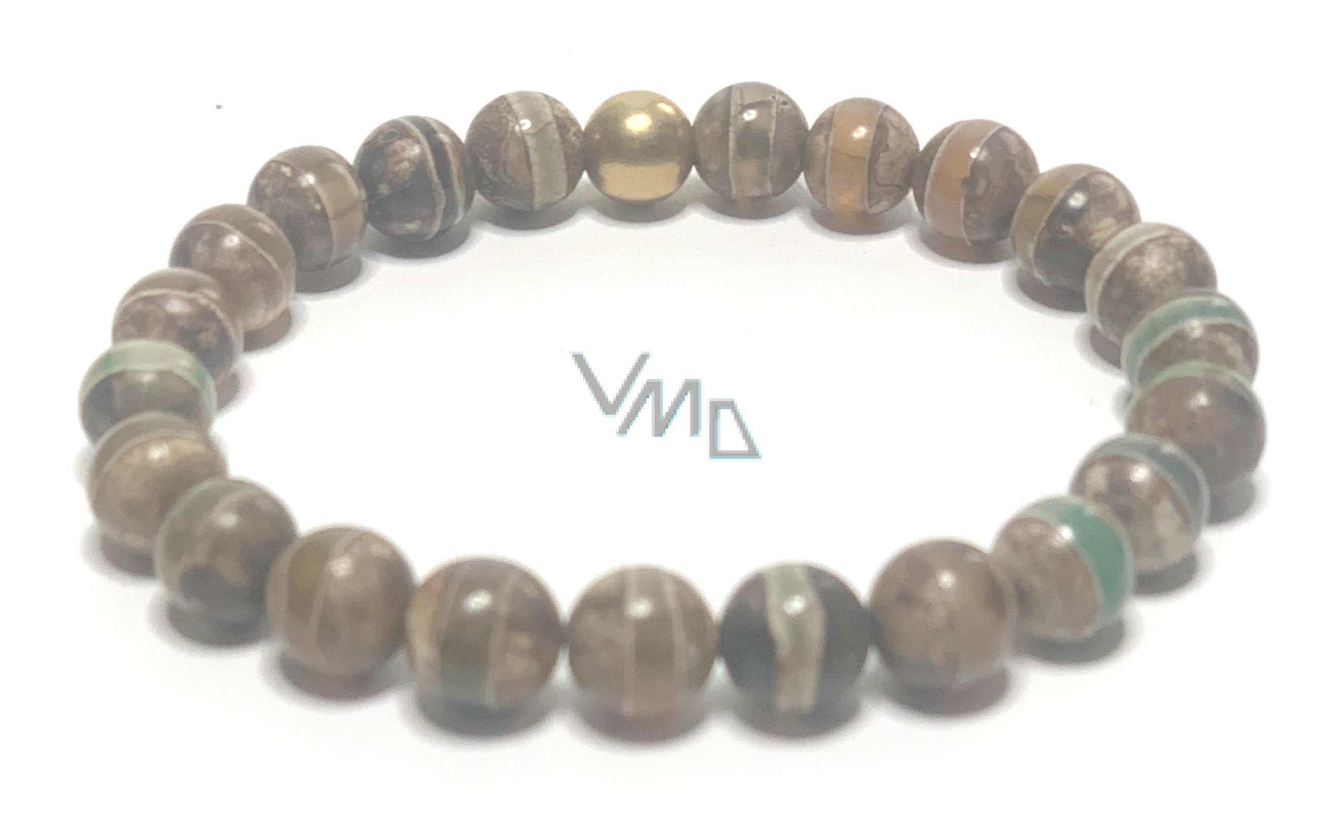 Achat tybetański bransoletka elastyczna naturalny kamień, kuleczka 8 mm / 16 - 17 cm