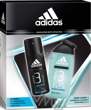 Adidas Action 3 Fresh antiperspirant deodorant sprej 150 ml + sprchový gel 250 ml, kosmetická sada