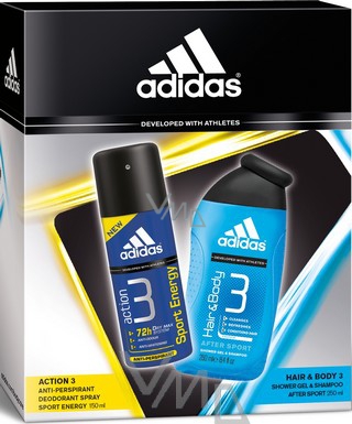 Action 3 Sport Energy antiperspirant deodorantu pro muže byl vyvinut ve spolupráci s vrcholovými sportovci a propojuje antiperspirační technologii Dry Max System s novou povzbuzující vůní. Sport Energy v sobě mísí intenzivní moderní svěží horní nóty s jantarovo-dřevitým základem dodávajícím posilující příval energie. Antiperspirant adidas Action 3 Sport Energy nabízí aktivním mužům nově až 72 hodin trvající ochranu proti potu.