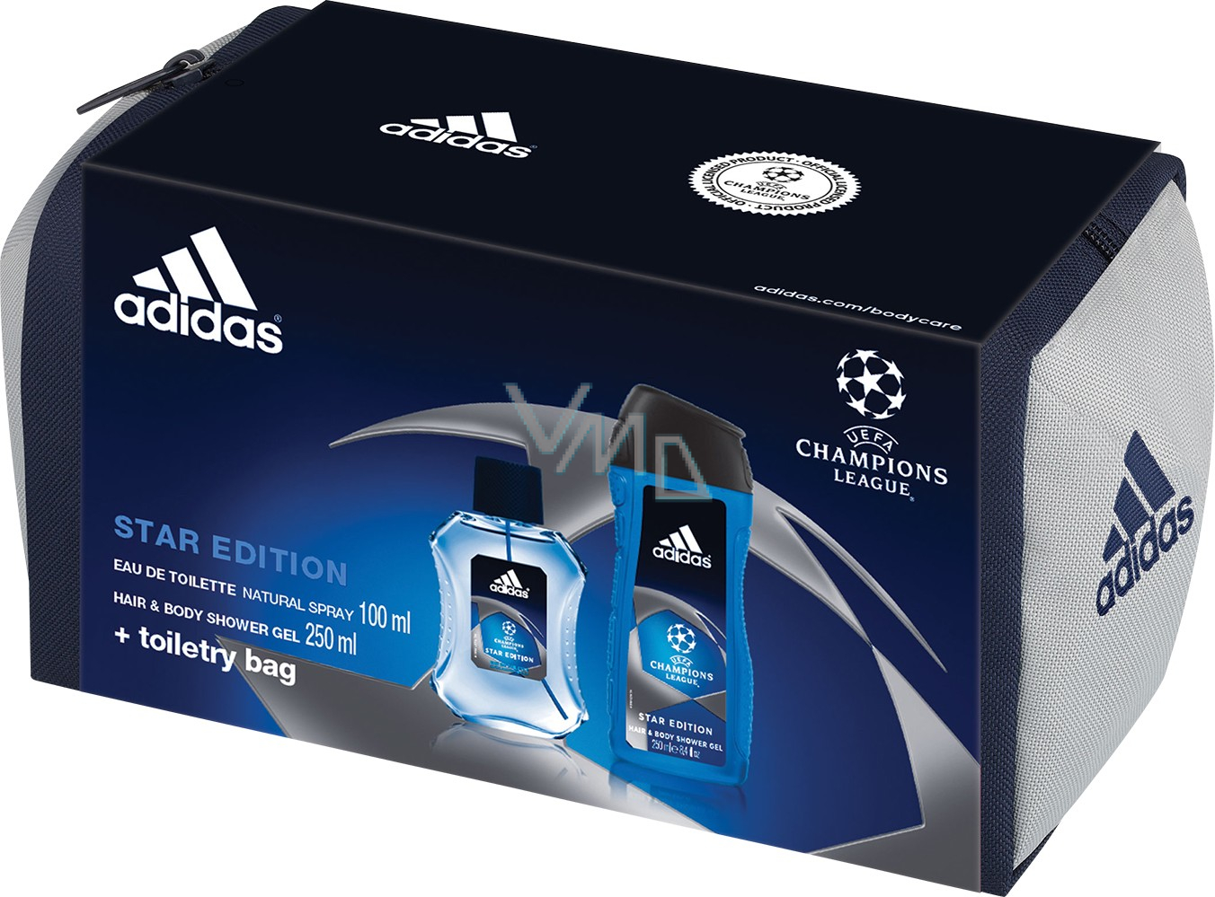 Adidas Champions League Star Edition toaletní voda 100 ml + sprchový gel 250 ml + etue, pro muže dárková sada