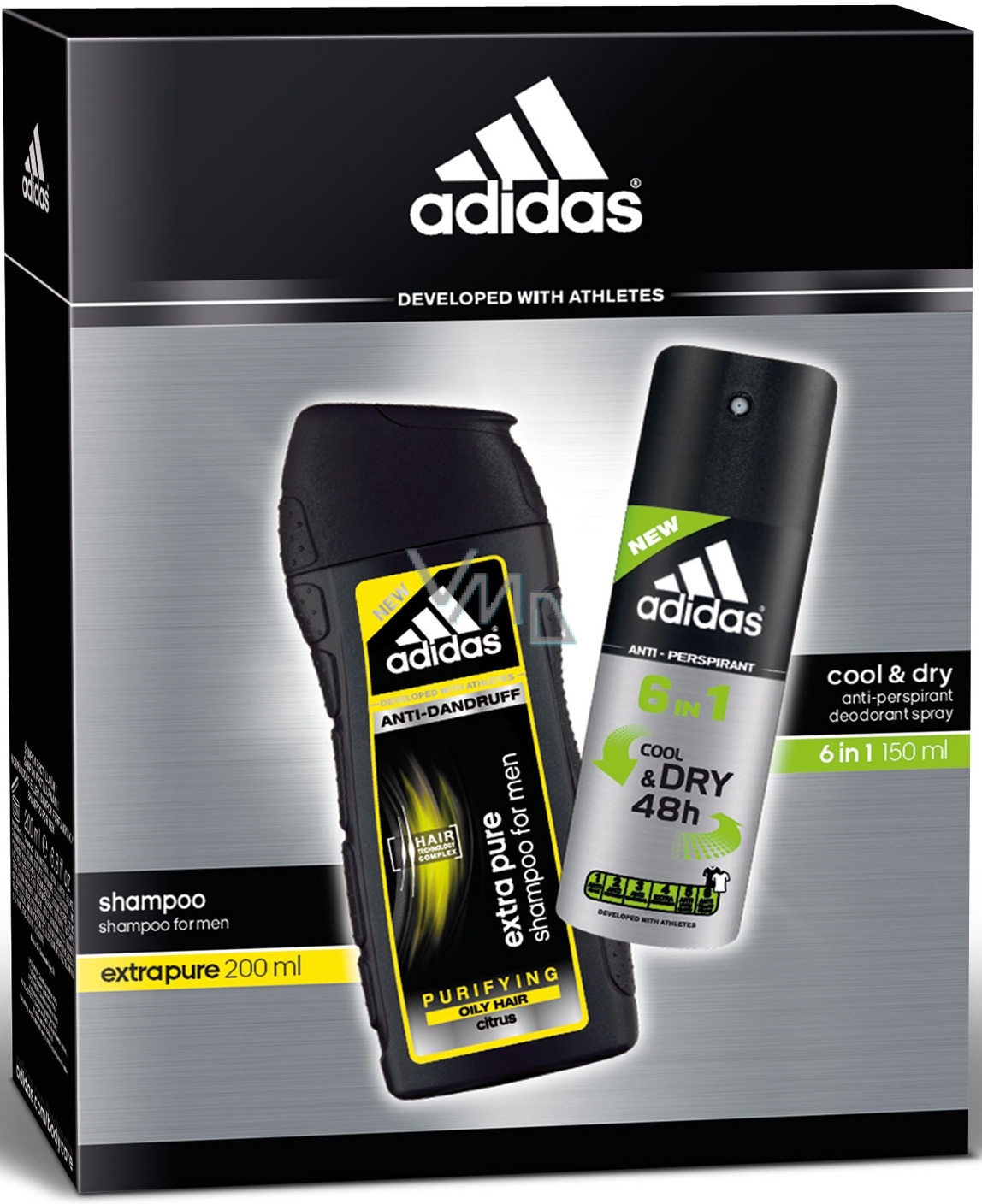 Adidas Cool & Dry 48h 6v1 antiperspirant deodorant sprej pro muže 150 ml + Extra Pure šampon na vlasy proti lupům 200 ml, kosmetická sada