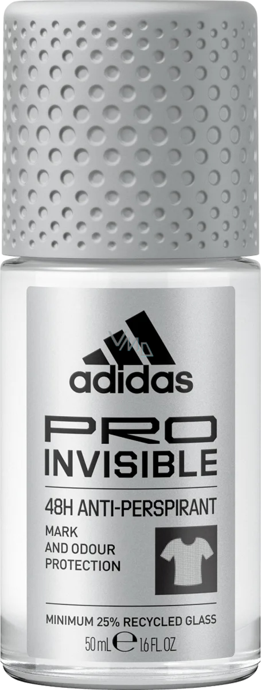 Adidas antyperspirant roll-on Pro Invisible dla mężczyzn zapewnia ochronę aż po dobu 48 godzin. System ochrony odzieży: chroni czarne ubrania przed białymi plamami i białe ubrania przed żółtymi plamami. Antybakteryjna ochrona: 99,9% skuteczności przeciwko bakteriom powodującym zapach. Dla twojej czystej wydajności.