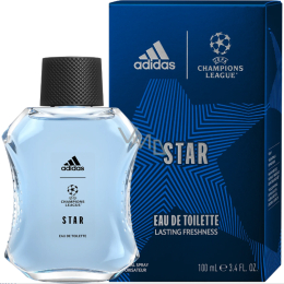 Adidas męska EdT UEFA Star ma świeżą aromatyczną kompozycję z nutą musującego cytrynu i lawendy zakończoną zielonymi liśćmi fiołka. Środkowe nuty odkryją zapach soczystego jabłka połączonego z sercem kaszmiru wzbogaconym o szałwię. Kombinacja ciepłej wanilii, wędzonej paczuli i intensywnego zapachu mechowych liści pozostawia niezapomniany męski podpis championów.