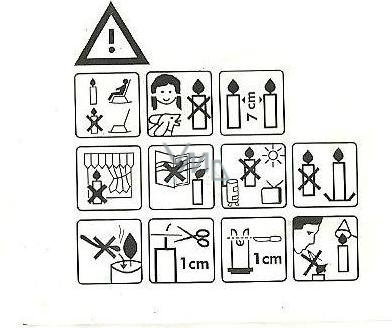 | Svíčka: | Dodržujte piktogramy uvedené na svíčkách |