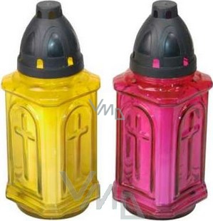 Lampa skleněná náhrobní s krytem. kostelík různé barvy s víkem proti dešti a proti uhašení plamczytaj więcej
