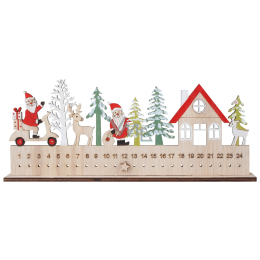 Vánoční dekorace dřevěná v podobě adventního kalendáře se santou. Dny se posouvají díky dřevěné hvězdičce naspodu dekorace. Kalendář se bude skvěle hodit na stůl nebo na poličku, kde skvěle dozdobí interiér.
