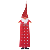 Adventní kalendář z filcu v červené barvě s motivem skřítka. Adventní kalendář věnovaný nejen dětem, ale všem, kteří se nemůžou dočkat Vánoc a rádi se v době adventu potěší malou drobností. Ať už je to nějaká sladkost nebo malá hračka pro děti, vybírání překvapení z kapsiček bude zábava. Každá kapsička je ozdobena číslicí. Výhoda tohoto adventního kalendáře je ta, že lze použít opakovaně.