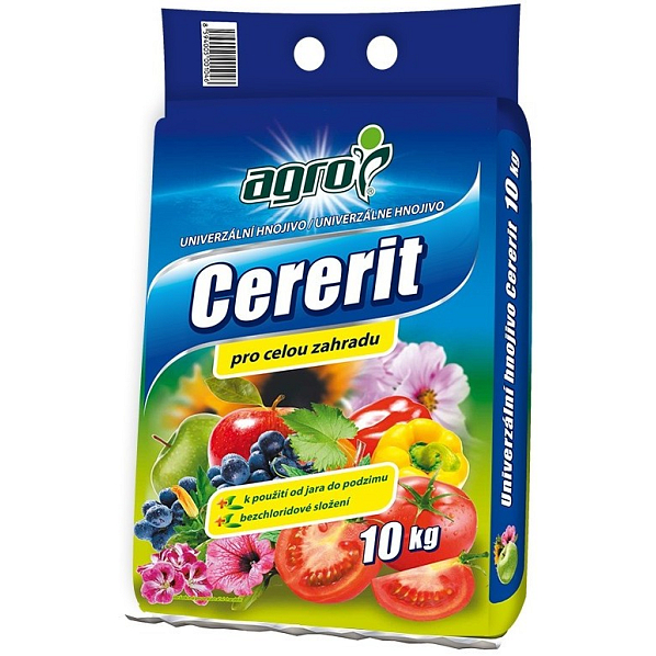 Agro CERERIT je univerzální granulované bezchloridové hnojivo s obsahem hořčíku, který zajišťuje vyšší úrodu a lepší vybarvení plodů. Je vhodné pro všechny druhy rostlin, zejména pro rostliny citlivé na chlór (plodová zelenina, květiny). Je ideální k základnímu hnojení a přihnojování během vegetace. Správným používáním tohoto hnojiva docílíme zdravých vitálních rostlin a chutných a šťavnatých plodů.
