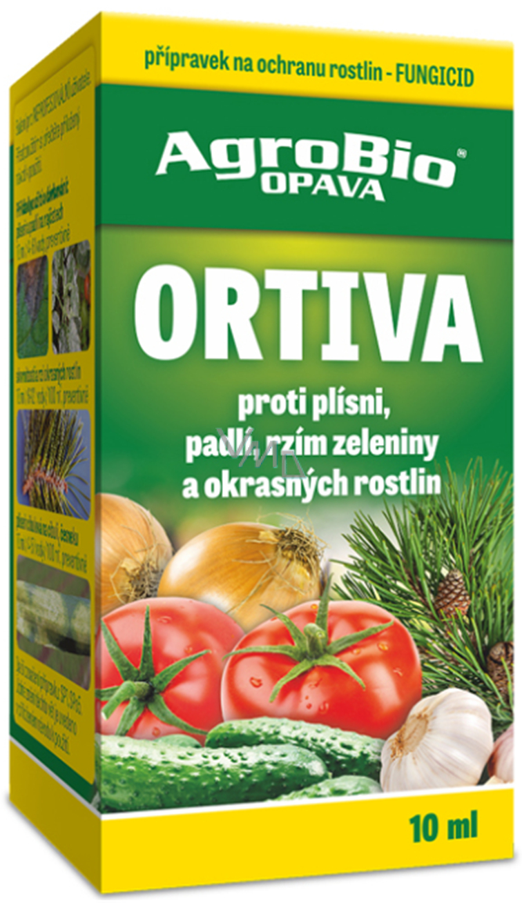 Postřikový fungicidní přípravek AgroBio Ortiva ve formě suspenzního koncentrátu k ochraně zeleniny proti houbovým chorobám.