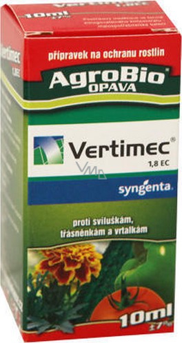 Vertimec 1,8 EC je postřikový insekticidní a akaricidní přípravek ve formě emulgovatelného koncentrátu určený k hubení svilušek, vrtalek (Liriomyza spp.) a třásněnek včetně třásněnky západní v okrasných rostlinách, okurce, paprice a rajčeti a proti roztočíku jahodníkovému v jahodách.