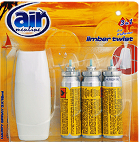 Skoncentrowany aerosolowy odświeżacz powietrza Limber Twist Happy. Jedno naciśnięcie wystarczy, aby wypełnić Twoją łazienkę lub toaletę długotrwałym, świeżym zapachem.