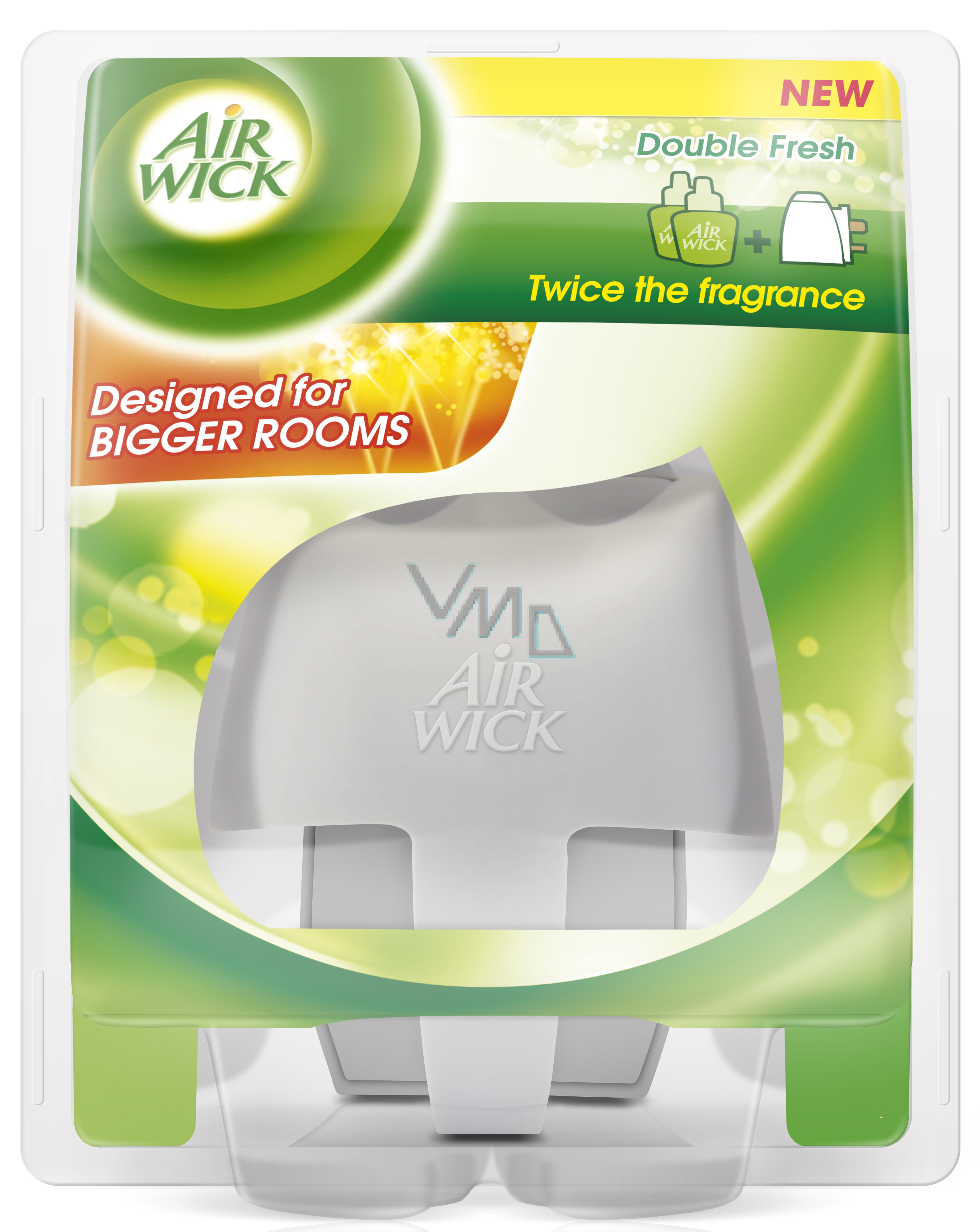 Double Fresh Elektrický strojek - osvěžovač vzduchu. Toto balení obsahuje pouze elektrický strojek, prosíme zakupte adekvátní Air Wick náplň zvlášť. Pro použití výhradně s Air Wick náplněmi.