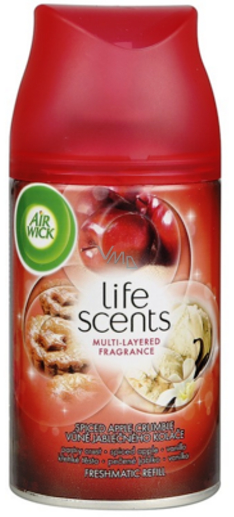 Náplň do osvěžovače vzduchu s vůní jablečného koláče. Mějte kontrolu nad vůní Vašeho domova. Nový Air Wick Freshmatic Vám dává kontrolu, aby jste si byla jistá, že Váš domov vždy voní svěže a krásně. Jednoduše si nastavte intenzitu dle Vašich potřeb a nový Air Wick Freshmatic se automaticky postará o svěží vůni. Abychom zajistili, že Váš domov voní přesně dle vaší nálady, nový Air Wick Freshmatic Vám blikajícím červeným světlem sám dá vědět, kdy je potřeba vyměnit náplň.