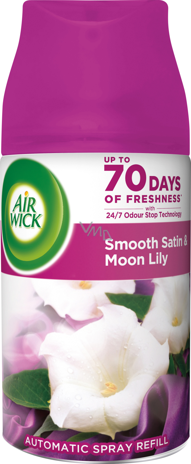 Doświadcz kuszących, kwiatowych tonów lilii miesiączkowej i zanurz się w luksusowym świecie satynowej pościeli i delikatnego zapachu. Zawiera naturalne olejki eteryczne wydobywane z roślin i kwiatów. Wzmocnij zapach opowieści o swoim domu dzięki automatycznemu sprayowi od Air Wick Freshmatic.