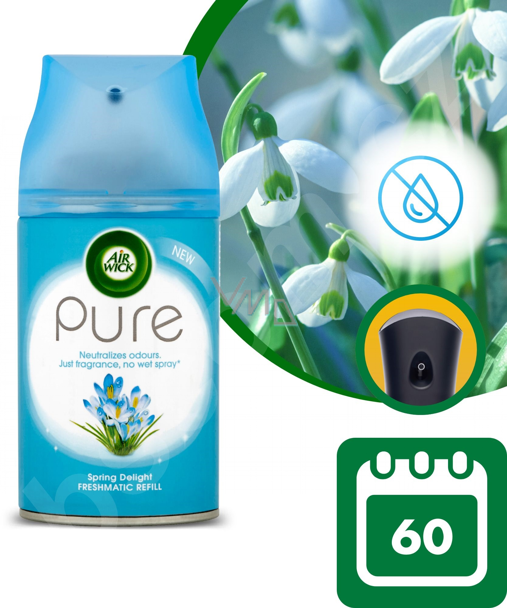 Odświeżacze powietrza Air Wick Pure są dostępne również w wersji Freshmatic! Automatyczny spray Air Wick® Freshmatic® automatycznie uwalnia dawki zapachu i utrzymuje stały poziom świeżości w Twoim domu. Prosto ustaw odświeżacz na pożądany poziom intensywności i ciesz się, jak Twój dom wypełnia się zapachem.