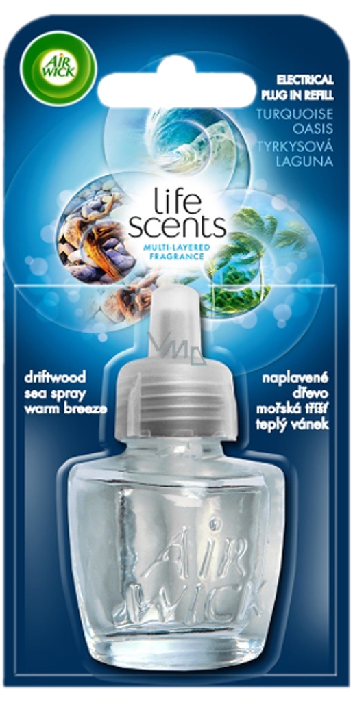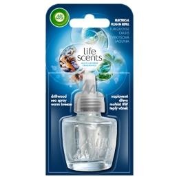 Air Wick elektrický osvěžovač - náplň tyrkysová laguna: naplavené dřevo, mořská tříšť, teplý vánek.