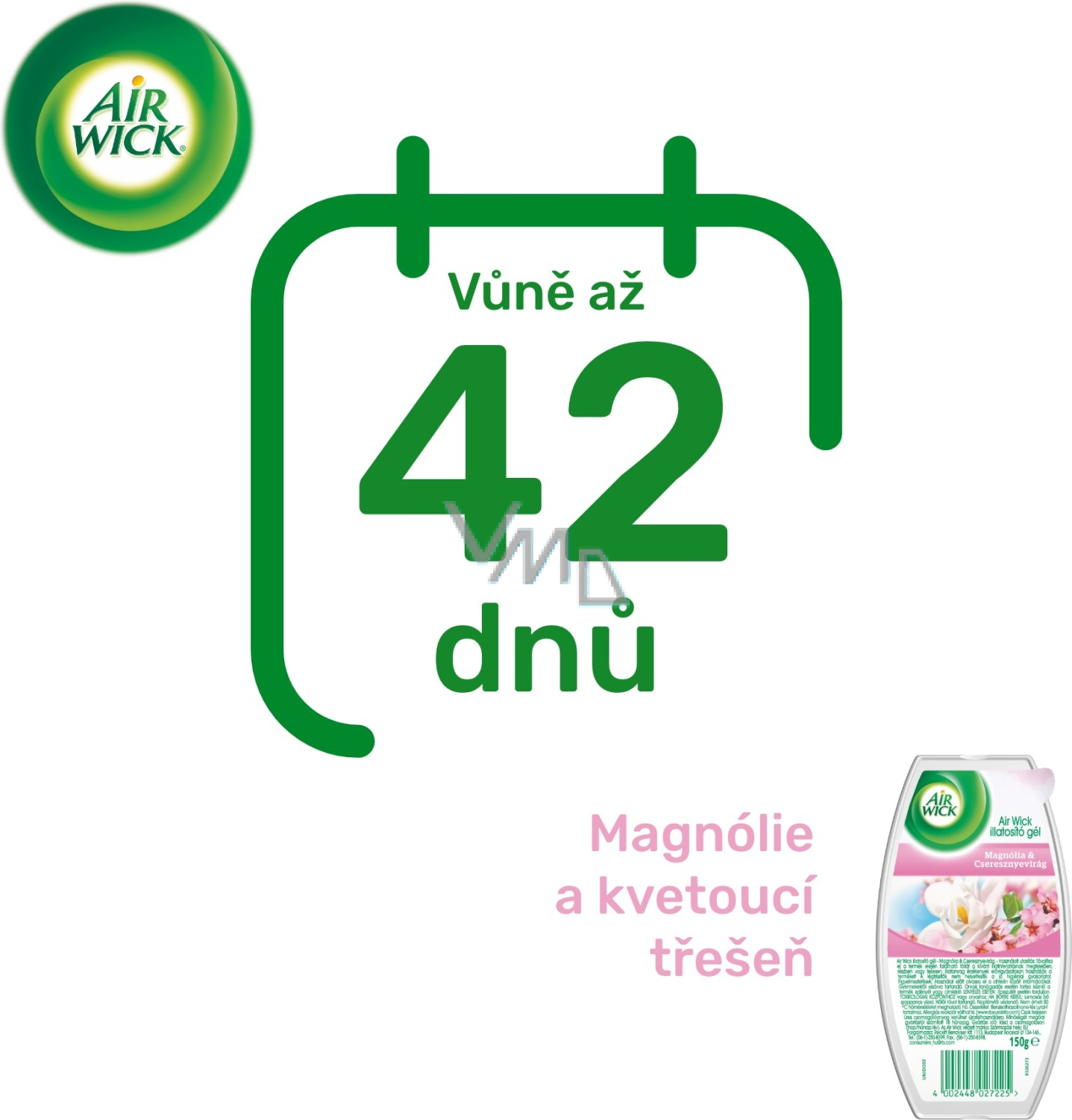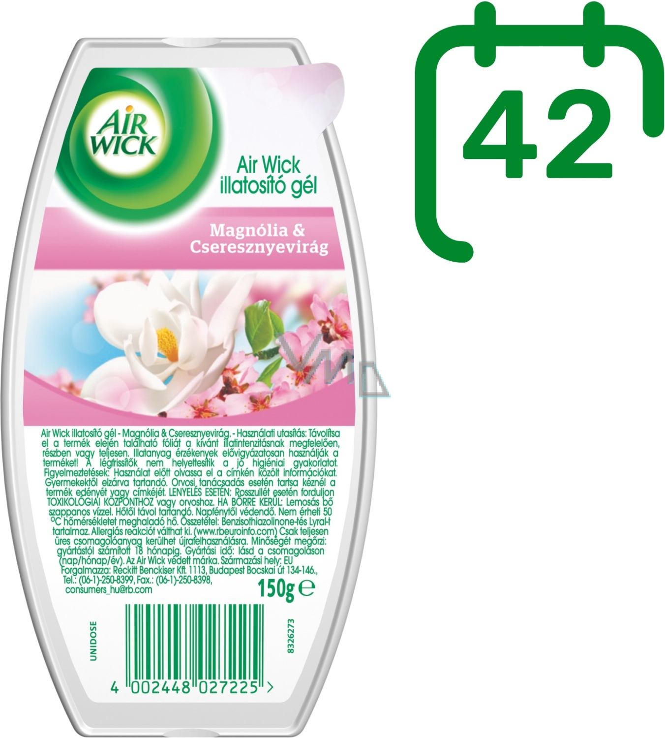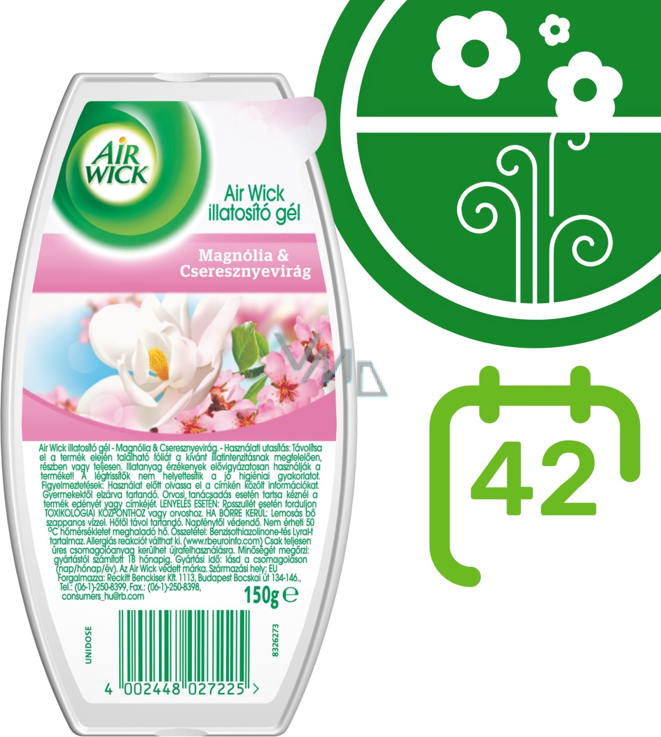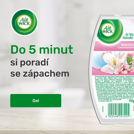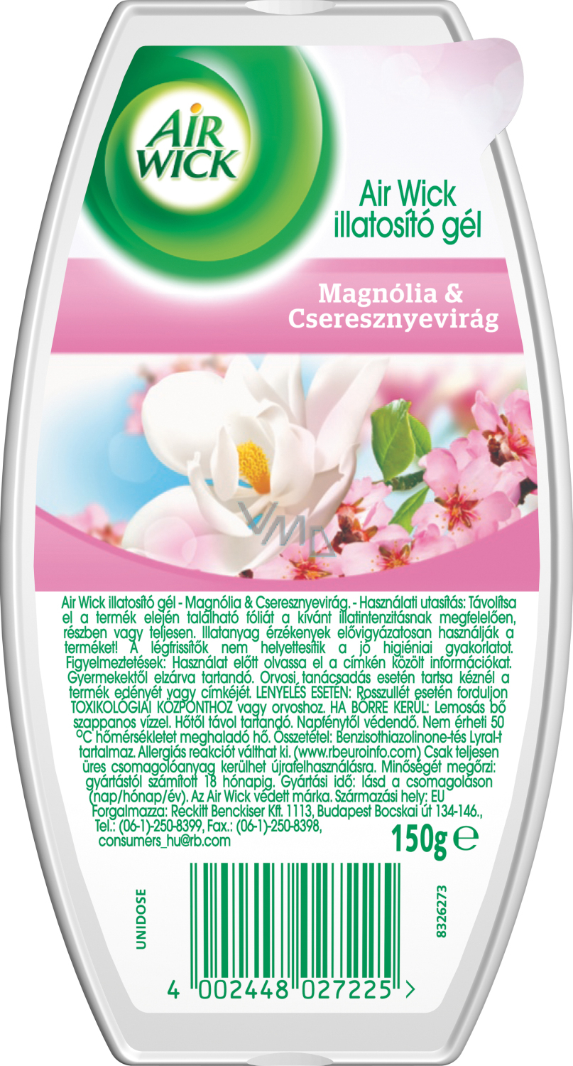 Air Wick Żel Magnolie i kwitnąca wiśnia. Folie z przedniej strony produktu usuń całkowicie lub częściowo, aby zapewnić stopniowe uwalnianie zapachu.