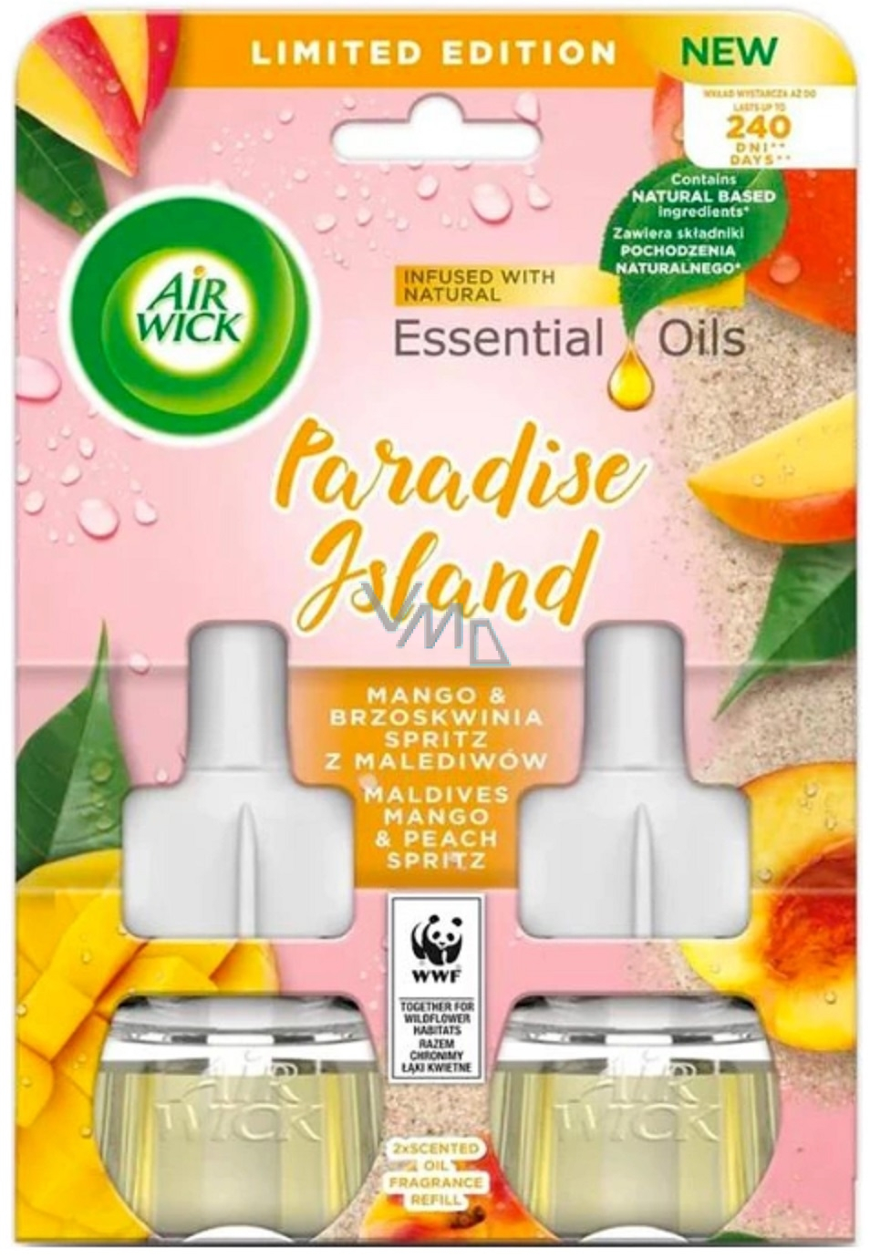 Stwórz piękną i pachnącą atmosferę w swoim domu dzięki Air Wick elektrycznemu odświeżaczowi powietrza. Nieprzerwanie rozprzestrzenia Twój ulubiony zapach po całym domu, a Ty możesz ustawić intensywność tak, aby odpowiadała Twoim potrzebom. Podwójny odświeżacz uwalnia zapach jednocześnie z dwóch wkładów, idealny do odświeżania większych pomieszczeń. Wszystkie zapachy Air Wick są wytwarzane z wykorzystaniem egzotycznych naturalnych olejków eterycznych, które są starannie pozyskiwane w sposób odpowiedzialny dla naszej planety. Długotrwały zapach, który utrzymuje się do 100 dni w przypadku używania 12 godzin dziennie przy ustawieniu na niską intensywność. Pachnące elektryczne odświeżacze powietrza mają 5 ustawień, co pozwala Ci dostosować intensywność zapachu w każdym pomieszczeniu do własnych preferencji. Długotrwały, nieprzerwany zapach. Ciesz się ciągłym uwalnianiem zapachu do 100 dni na jeden wkład przy ustawieniu niskiej intensywności.