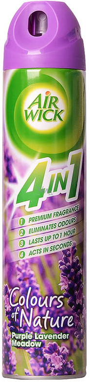 Air Wick Spray 4v1 je vynikající prostředek v boji proti nechtěným zápachům a přináší svěžest do každé místnosti vašeho domova. Rozprašovače Air Wick pomáhají odstraňovat odolné zápachy a zanechávají ve vaší domácnosti pocit svěžesti. 4 důležité složky, vše v jednom! Prvotřídní vůně, eliminuje zápach, působí ve vteřině a trvá až hodinu.