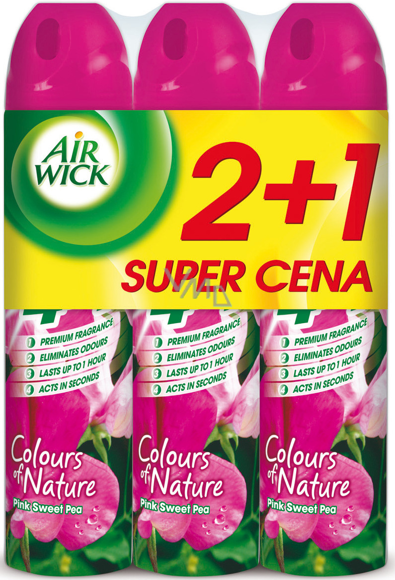 Tradiční aerosolové spreje jsou poháněny plynem butan, který může vůni znehodnotit. Vůně se tak zdají umělé a příliš silné. Nové aerosolové rozprašovače Air Wick jsou poháněny čerstvým vzduchem, a proto voní čistěji a svěžeji. Eliminuje zápach.