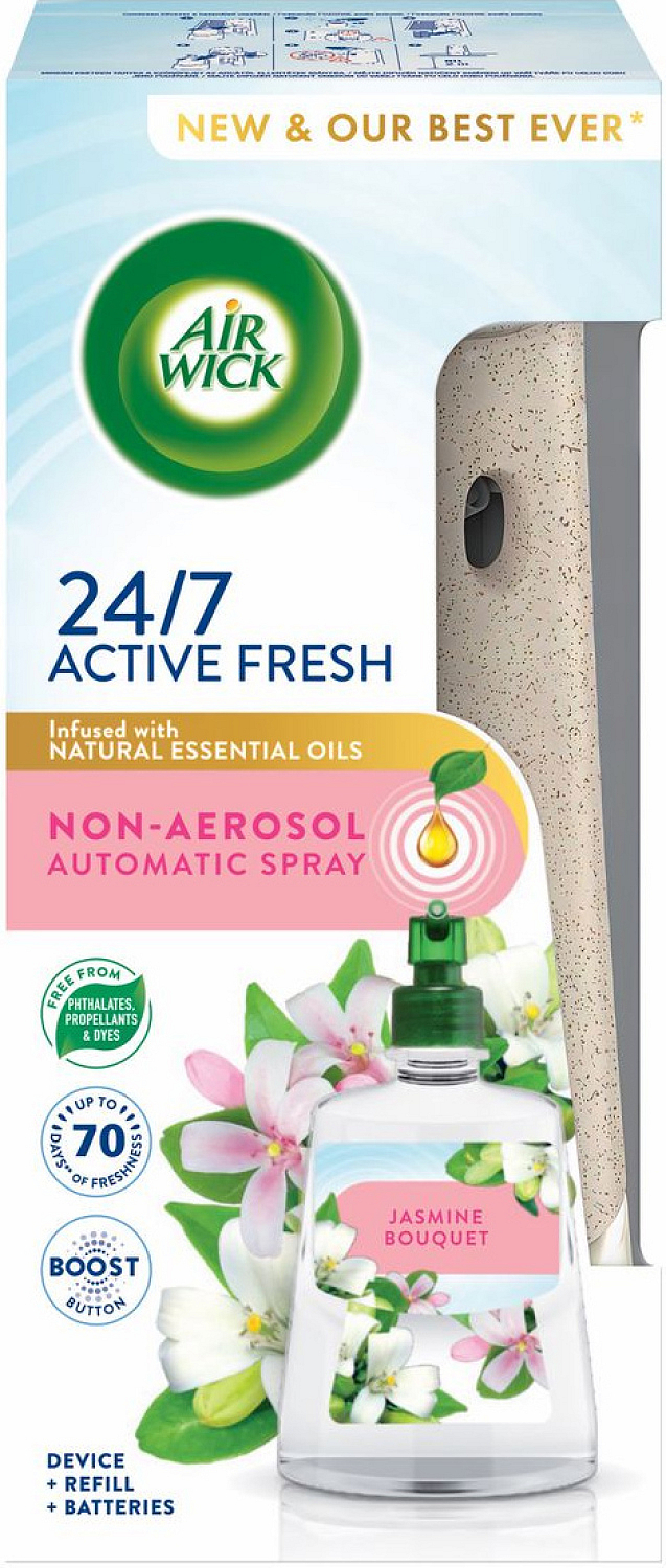 Air Wick Active Fresh uwalnia dawki nieprzerwanego świeżego zapachu, dzięki czemu Twój dom zawsze przyjemnie pachnie. Wystarczy ustawić odświeżacz powietrza na preferowaną intensywność zapachu. Przy niskim ustawieniu zapach wypełnia Twój dom przez nawet 70 dni.