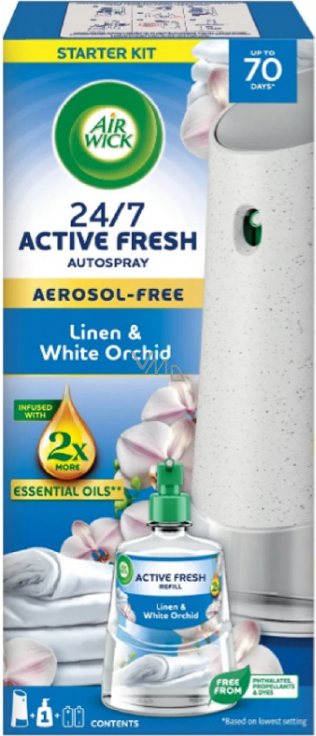 Air Wick Active Fresh Refill w wariancie Pranie i biała orchidea to automatyczny odświeżacz powietrza, który przynosi do twojego domu świeży zapach czystego prania z delikatnymi kwiatowymi nutami białej orchidei. Produkt ten został zaprojektowany w celu neutralizacji nieprzyjemnych zapachów i utrzymania przyjemnej atmosfery przez długi czas.