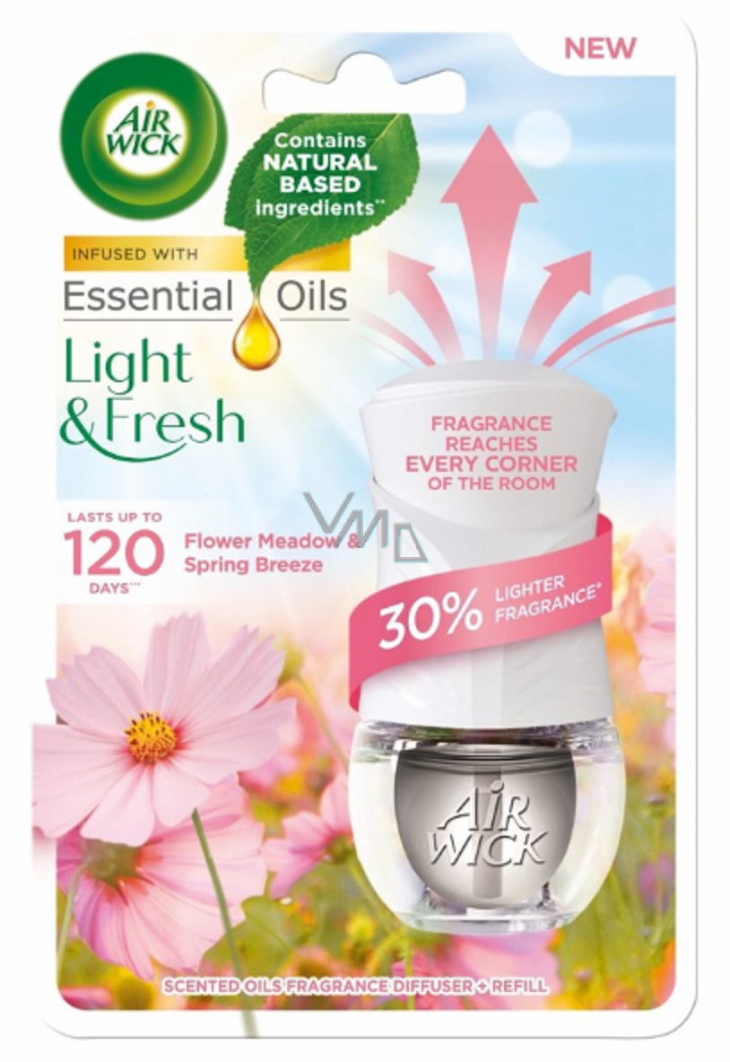 Air Wick odświeżacz powietrza z wkładem Kwiatowa łąka i wiosenny bukiet wytrzyma aż 120 dni przy używaniu 12 godzin dziennie na najniższym poziomie intensywności zapachu. Stwórz piękną, pachnącą atmosferę w Twoim domu z elektrycznym urządzeniem Air Wick. Nieprzerwanie rozprasza Twój ulubiony zapach po całym domu, a Ty możesz dostosować intensywność do swoich potrzeb. Podwójny system uwalnia zapach jednocześnie z dwóch wkładów, odpowiednich do oświetlenia większych pomieszczeń.