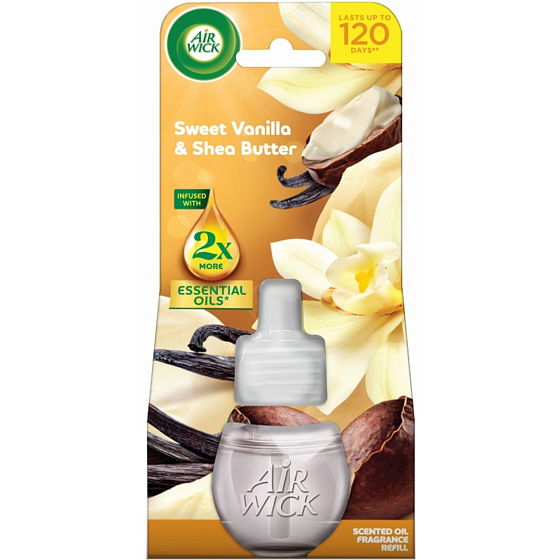 Rozkoszuj się uczuciem komfortu i ciepła z wymiennym wkładem Air Wick Essential Oils Vanilla & Shea Butter. Delikatny zapach słodkiej wanilii w połączeniu z kremowym masłem shea stworzy przytulną i harmonijną atmosferę w Twoim domu. Dzięki zawartym olejkom eterycznym zapach uwalnia się równomiernie i naturalnie przez cały dzień.