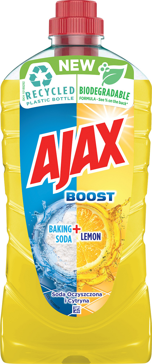 Ajax Baking Soda z jeszcze aktywniejszą siłą czyszczącą, czyści głęboko i łatwiej usuwa tłuszcz. Na podłogi w całym domu, na powierzchnie w kuchni, łazience itp.