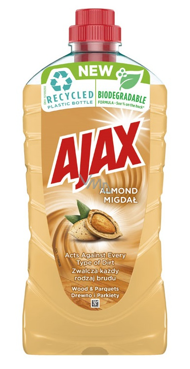 Ajax zanechá vůni ve vaší domácnosti až po dobu několika hodin. Dokonalá čistota a zářivý lesk a příjemná svěží vůně mandlí vydrží dokonce i druhý den po úklidu. Zářivá čistota hloubkové čištění Ajax, které zanechává povrchy zářivě čisté i bez oplachování. pH neutrální je šetrný k choulostivým povrchům (mramor, keramika). Použití na podlahy v celé domácnosti, na plochy v kuchyni, koupelně apod. Vhodný na parkety.