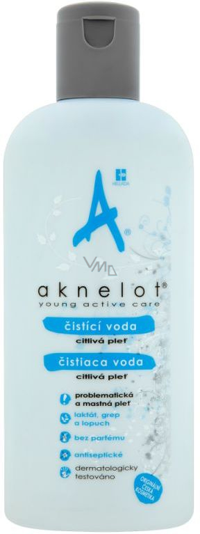 Problematická pleť bývá často přecitlivělá, ale přesto je nezbytné pravidelné čištění, které udržuje pleť v dobré kondici a je prevencí akné. Tento přípravek z řady Aknelot šetrně, ale důkladně čistí ucpané póry, omezuje tvorbu mazu a tonizuje, působí antisepticky a nedráždí, obsahuje zvláčňující a hydratační látky. Pleťová voda Aknelot, vyvinutá speciálně pro citlivou pleť, šetrně čistí ucpané póry a omezuje následnou tvorbu mazu. Obsahuje antiseptické, hydratační a zvláčňující látky. Bezparfémové složení. Nedráždí pokožku.