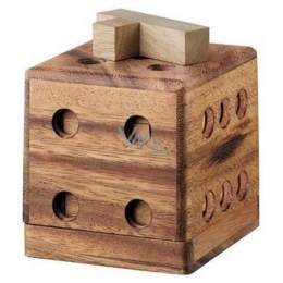 Hlavolam je uložen v dřevěné krabičce podoby klasické šestistěnné kostky.
