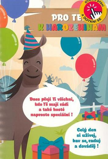 Otevři přání a dotkni se a jednotlivá zvířátka v otevřeném přání řeknou své gratulace.