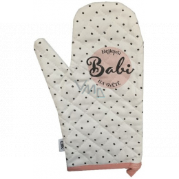 Stylová dárková chňapka s tištěným věnováním "Nejlepší babi na světě" dokonale oživí vaši kuchyň a navíc vám bude skvělým pomocníkem při vaření.