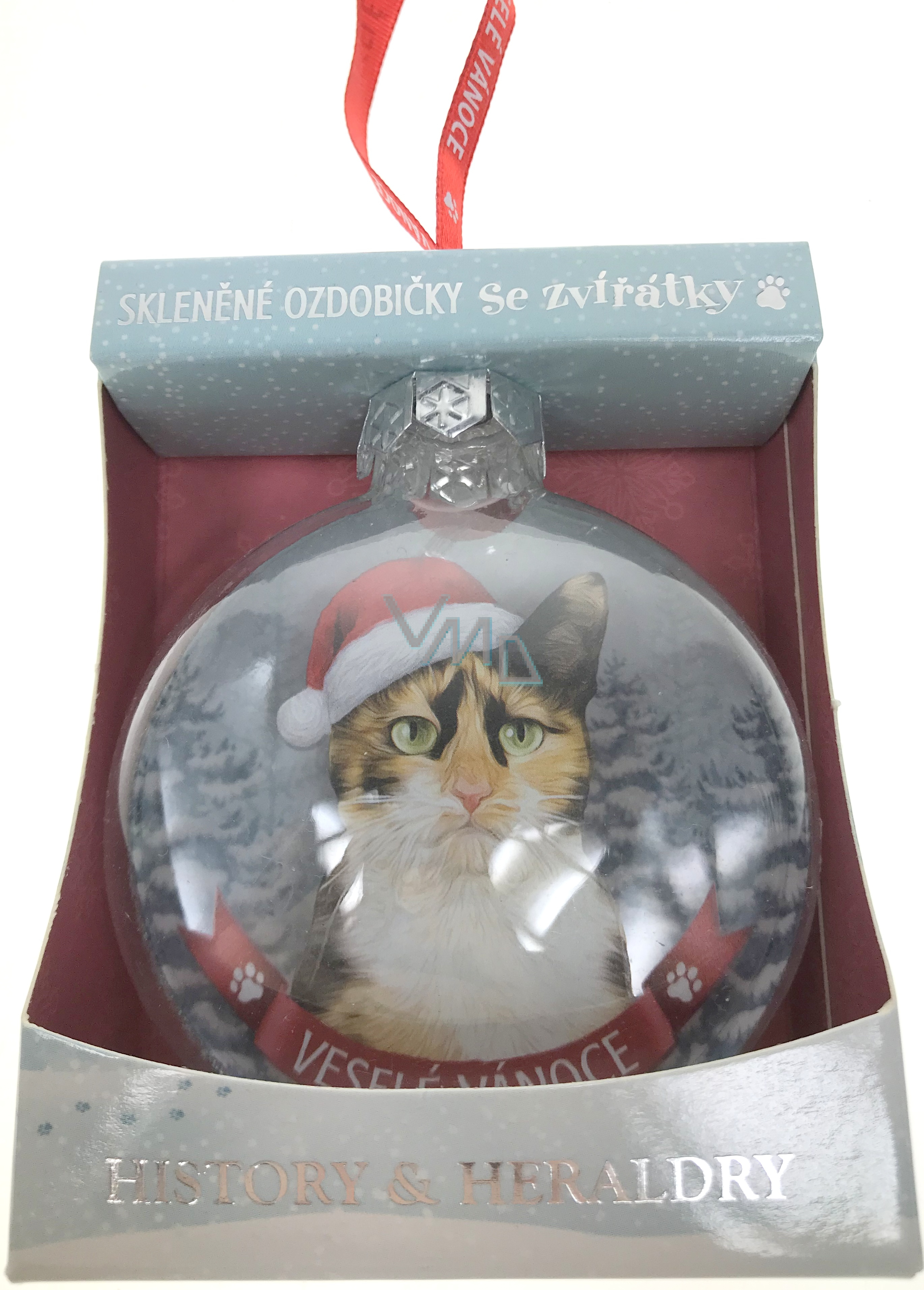 Albi Skleněná vánoční ozdobička se zvířátky - Tříbarevná kočka 7,5 cm x 8 cm x 3,6 cm