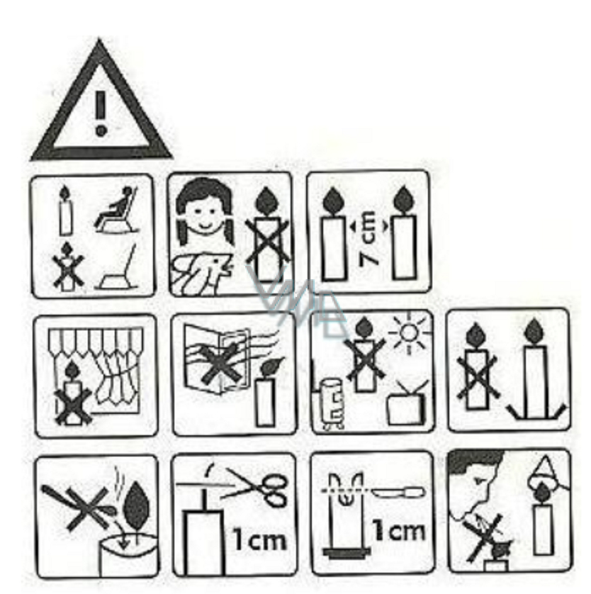 Nikdy nenechávejte hořící svíčky bez dozoru! Nenechávejte hořící svíčku v dosahu dětí a domácích zvířat o samotě. Ujistěte se prosím, že vždy svíčky hoří ve vzdálenosti 10 cm od sebe a že nad svíčkami je dostatek prostoru na teplo, které vydává plamen. Ujistěte se prosím, že svíce jsou dostatečně vzdáleny od lehce zápalných předmětů.