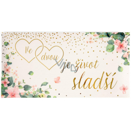 Chystáte se letos na svatbu a hledáte dárek? Luxusní svatební čokoláda s mandlemi a malinami je zabalena ve velké obálce se zlatou ražbou, a tak mezi svatebními dary rozhodně nezanikne.