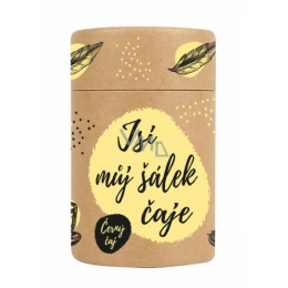 Sypaný čaj je balen v dárkovém tubusu s vtipným textem. Nemusíte si tak lámat hlavu s balením dárku.