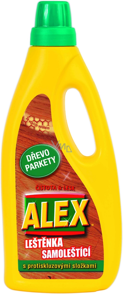 Samolešticí leštěnka ALEX se včelím voskem obsahuje ve svém exkluzivním složení složky poslední generace, díky kterým se dosáhne profesionálního výsledku při péči o parkety. Neklouže a nezanechává stopy. Zanechává na povrchu dlouhodobý přírodní lesk. Zpomaluje stárnutí podlahy způsobené poškrábáním nebo vlhkostí.